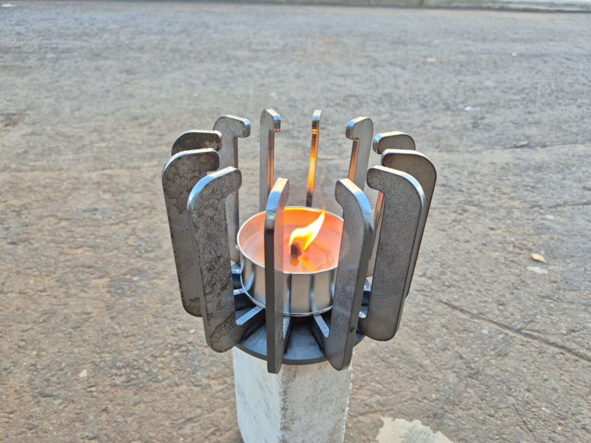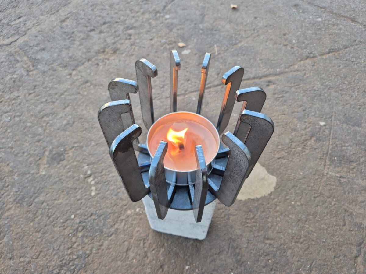 Opiskelijatöinä tehty Lyhtyteline. Sopii 100 mm ulkotulelle, isolle kynttilälle tai tuikulle.